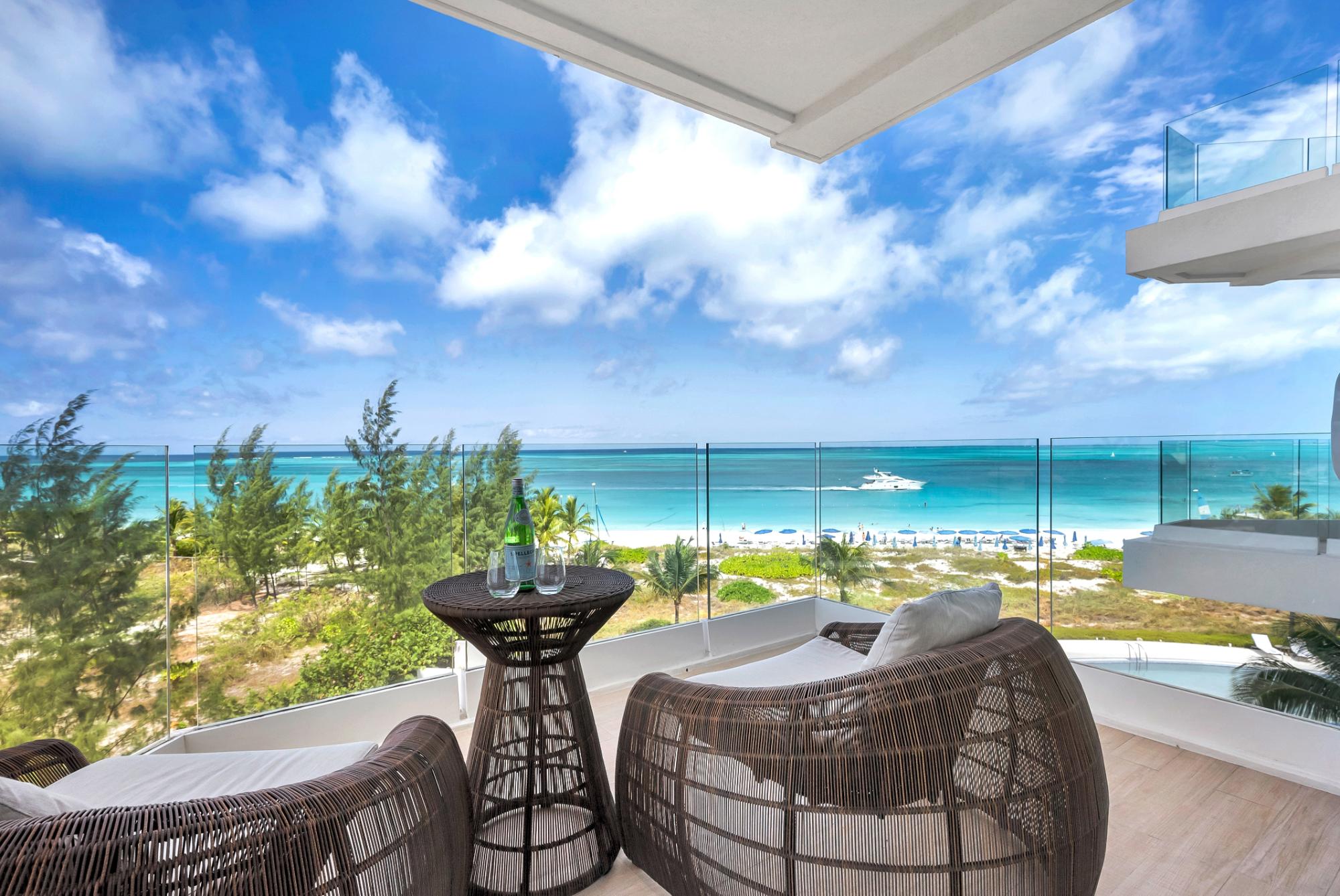 Discover a world of refined elegance in this exceptional 3,338 sq. ft. beachfront residence at The Ritz-Carlton Residences, Turks & Caicos. Perched directly on the pristine sands of Grace Bay Beach, this 3-bedroom, 4-bathroom + den lockout condo residence offers mesmerizing, unobstructed ocean views and spectacular sunset vistas. The 2,912 sq. ft. interior is a masterpiece of design, boasting soaring high ceilings, and premium finishes throughout. Enjoy breathtaking direct ocean views from multiple balconies totaling 428 exterior sf. of terrace space. Indulge with family and friends in this unique residence situated in a highly sought-after position in the beachfront building. Residents will enjoy privileged access to five-star lifestyle experiences, including services of The Ritz-Carlton, such as a dedicated residential concierge, valet parking, in-residence dining, and VIP status with The Ritz- Carlton guest relations. The Ritz-Carlton Residences Tower A comprises only 36 beachfront condominiums that will provide full ownership, luxury living, unparalleled service, and a warm sense of home. Indulge in the Ritz-Carlton's world-class amenities and services such as a state-of-the-art spa and fitness center, three restaurants, high-end boutique shopping, Ritz Kids programs, a Casino, a Conference facility, and a 125-guestroom hotel. This is more than a home; it's a lifestyle. This exceptional condo is held within a holding company structure, offering buyers a significant financial advantage by reducing the applicable stamp duty fees from 10% to 8% for Title Transfer. A truly unrivaled Caribbean experience awaits you!