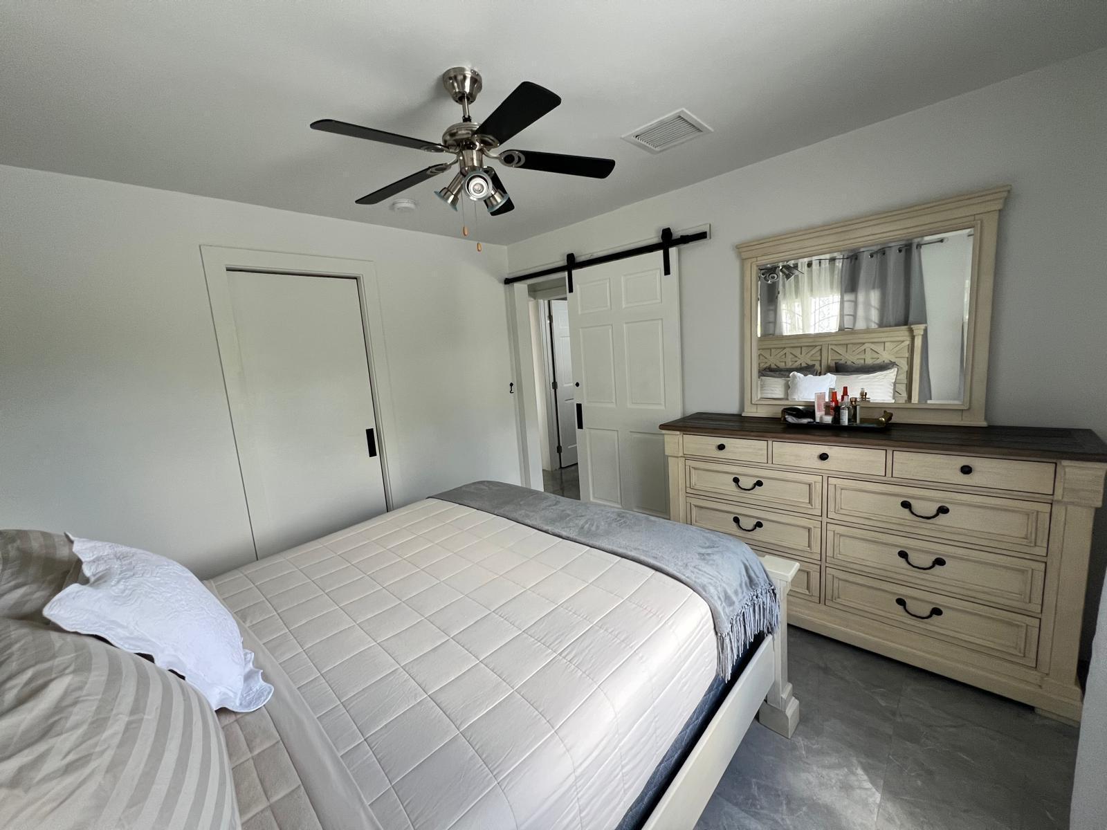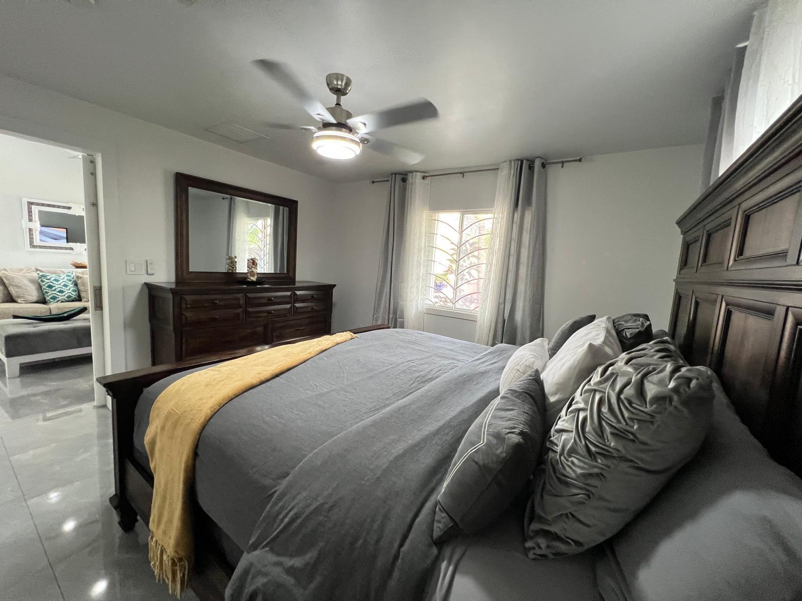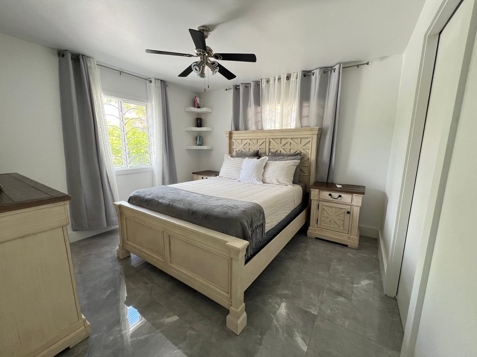 Villa Agatha boasts an open-plan living/kitchen/dining area, three bedrooms, two bathrooms (one en-suite), laundry room, closets, and a concrete-covered front deck, custom-designed back patio with semi inground pool. Significant upgrades in 2018 to this beautiful home includes new standing seam metal roof, concrete gables and driveway, extended front and back patio, full fenced, and gated, a completely redesigned kitchen with quality stone countertop, apron sink and custom cabinetry, lighting, new central air conditioning, indoor and outdoor dining, tiled walkways, storeroom and a carport. Adorned with majestic bismak and coconut palms as well as mature fruit bearing trees, sapodilla, soursop, avacado, ackee and much more adds to the allure of this home. The rectangular parcel sits on a low ridge in the north-central section of the Belglade Gardens development, offering limited pond views and frontage on Celestial Circle with easy access from both Bay Road and Mellnium Highway. A joy to show. Turn Key, immaculately kept.