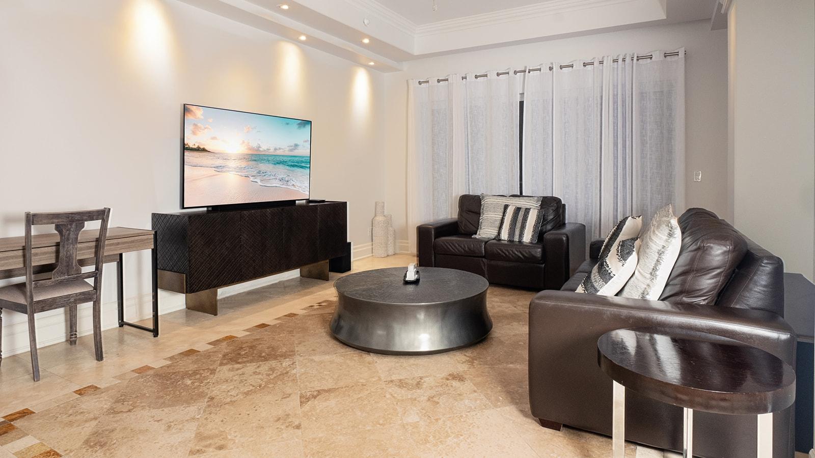 Contemporary Comfort in the Heart of Leeward Experience elevated island living in one of Turks and Caicos’ most desirable communities. Located within the exclusive Leeward neighborhood, this stunning 2-story penthouse at The Atrium offers a unique opportunity to enjoy spacious, modern living surrounded by tranquility and refined comfort. Thoughtfully designed, this residence features 3 generously sized bedrooms and a self-contained studio suite—perfect for accommodating guests, extended stays, or generating steady rental income. The versatile layout is ideal for both full-time living and vacation getaways, offering seamless indoor-outdoor flow and functional elegance. Enjoy the serenity of your private balcony or unwind on the expansive rooftop terrace—an inviting retreat for lounging, dining, and entertaining under sunny skies or starlit evenings. The outdoor spaces are a true extension of island living, encouraging relaxation at every turn. Located just a short walk or quick golf cart ride from the unspoiled sands of Sunset Beach, residents benefit from daily access to loungers and umbrellas, making beach days effortless and enjoyable. With exceptional amenities, strong rental potential, and a prime location in Leeward, this Atrium Penthouse represents an incredible opportunity to enjoy the very best of life in Turks and Caicos.