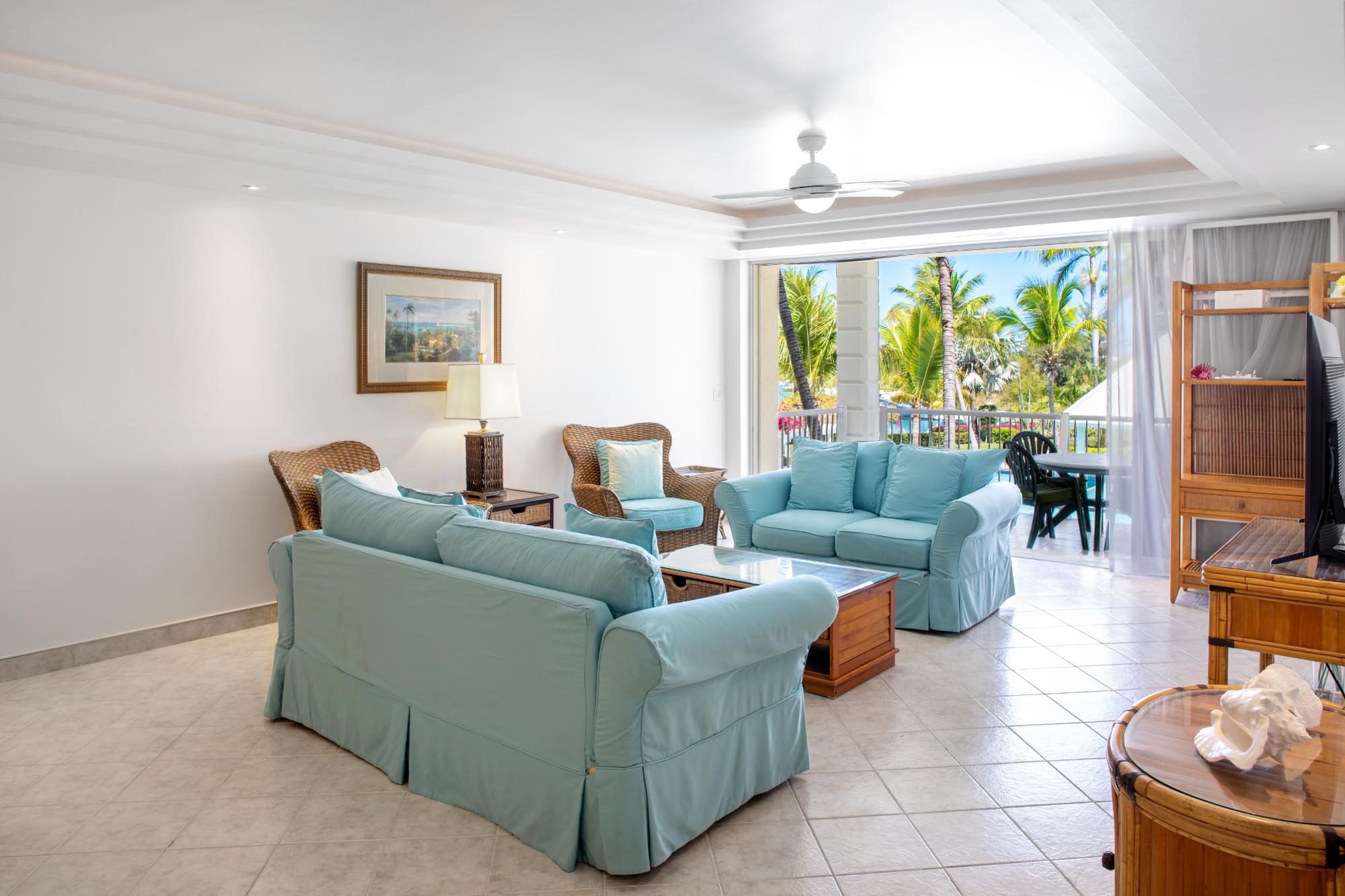 Discover true island living in this spacious 1845 square foot two-bedroom / two-bath condo at The Yacht Club, a short stroll away from western Grace Bay Beach. You will love how the open-plan living, dining, and kitchen area provides an ideal setting for entertaining and family gatherings. The living and dining rooms feature beautiful tray ceilings, modern ceiling fans and full furnishings. The living room deck is perfect for dining or enjoying a glass of wine at sunset. The view is over the pool, gardens, and Turtle Cove. The kitchen is just what the chef ordered with plenty space in a smart layout with solid wood cabinets and a center island with granite tops and additional countertop seating for four - comfortably. Your master suite has a tray ceiling, a large window to the north, and a slider to the large deck also overlooking the pool, turtle cove, and beyond to the sunsets. There is a shower over tub, double vanity, a generous walk in closet, and a second smaller closet (for him). Either closet could be set out as an owner’s closet. The pool area is clean and beautifully landscaped. Find solitude or just as easily become acquainted with your neighbors, as the majority of the development is occupied by owners and long-term tenants. Look forward to walks on Grace Bay Beach and snorkeling the renowned Smith's Reef. Also within walking distance are a coffee shop and several restaurants, water-sports, and tour operators. Owners are allowed to rent short-term such as with VRBO or Airbnb. No on-site management company to demand a share of revenues or mandate costly upgrades. The property is gated and has over-night security. No restaurant, no bar, no noise. The Yacht Club owns a reputation as one of the most private developments in the Turks and Caicos Islands.