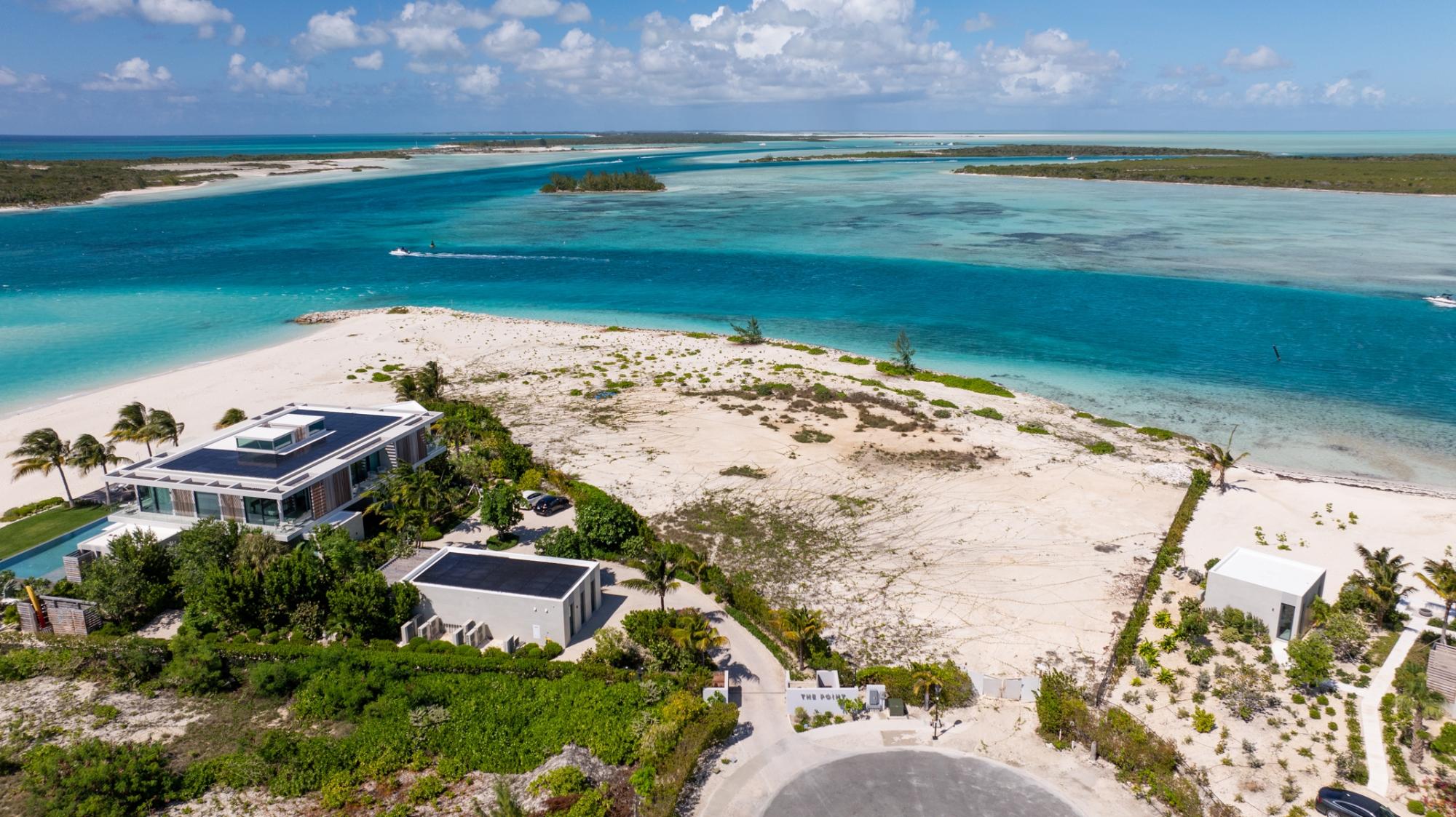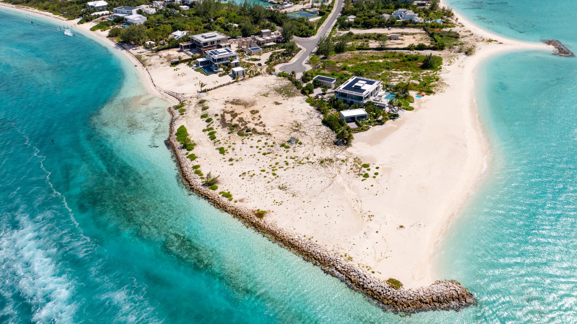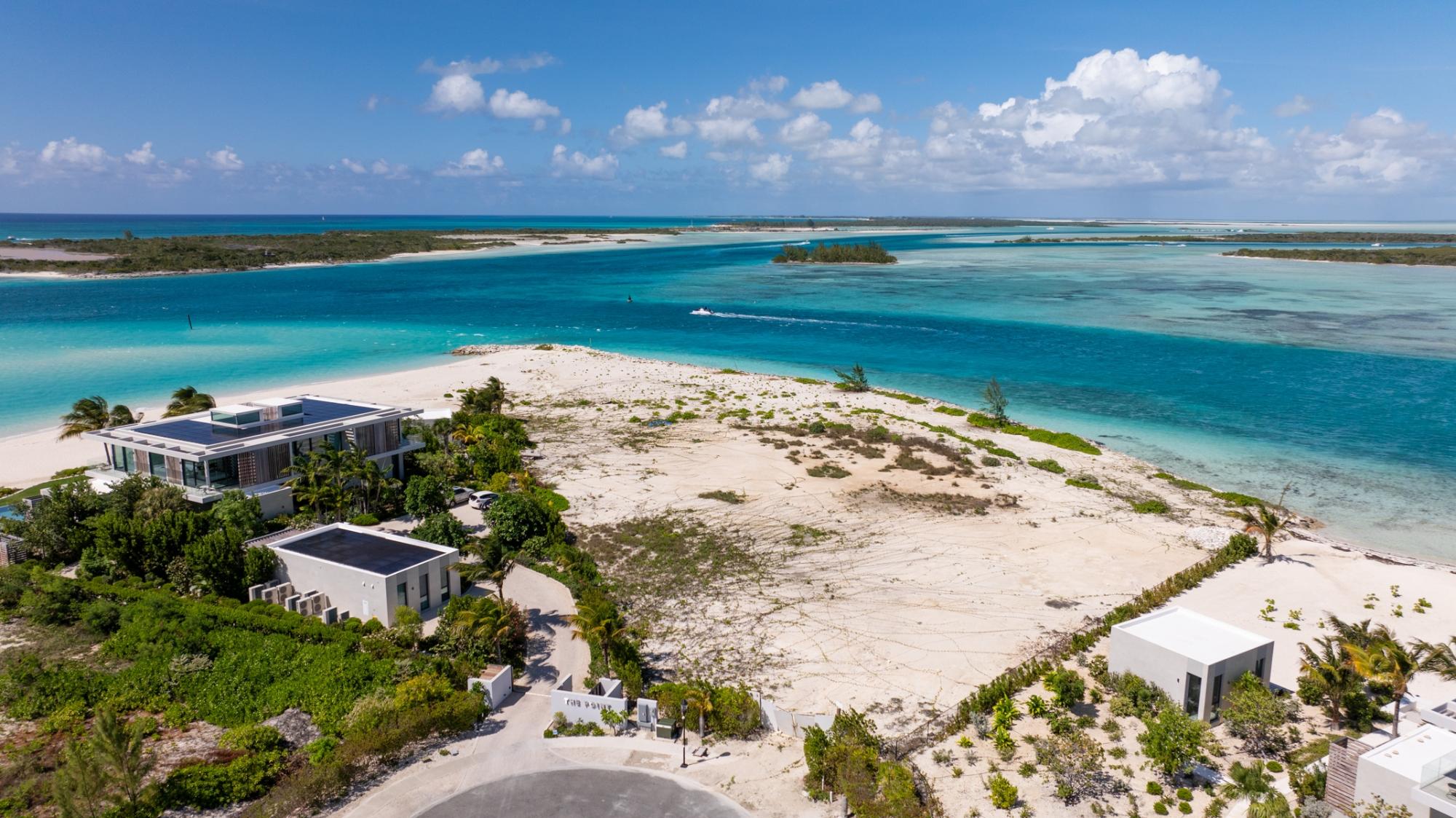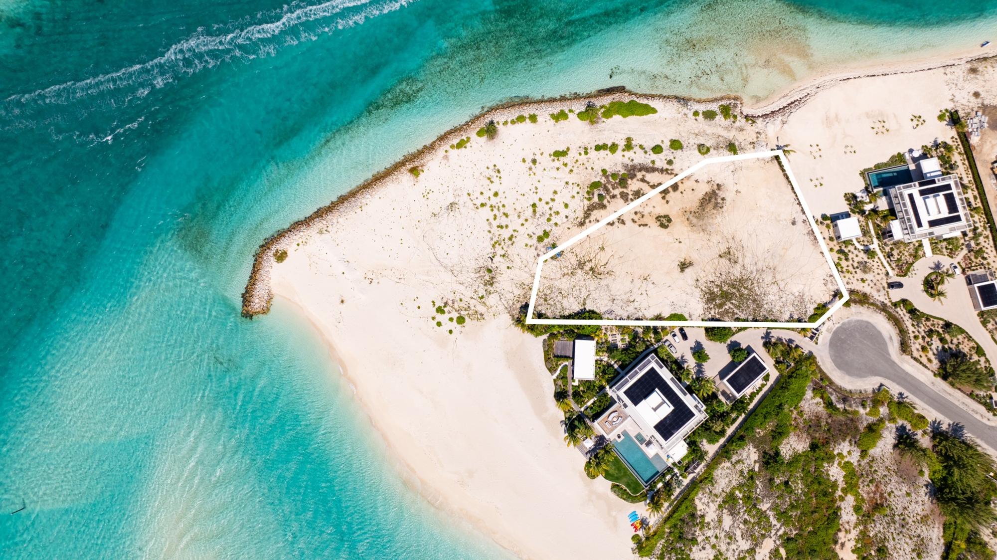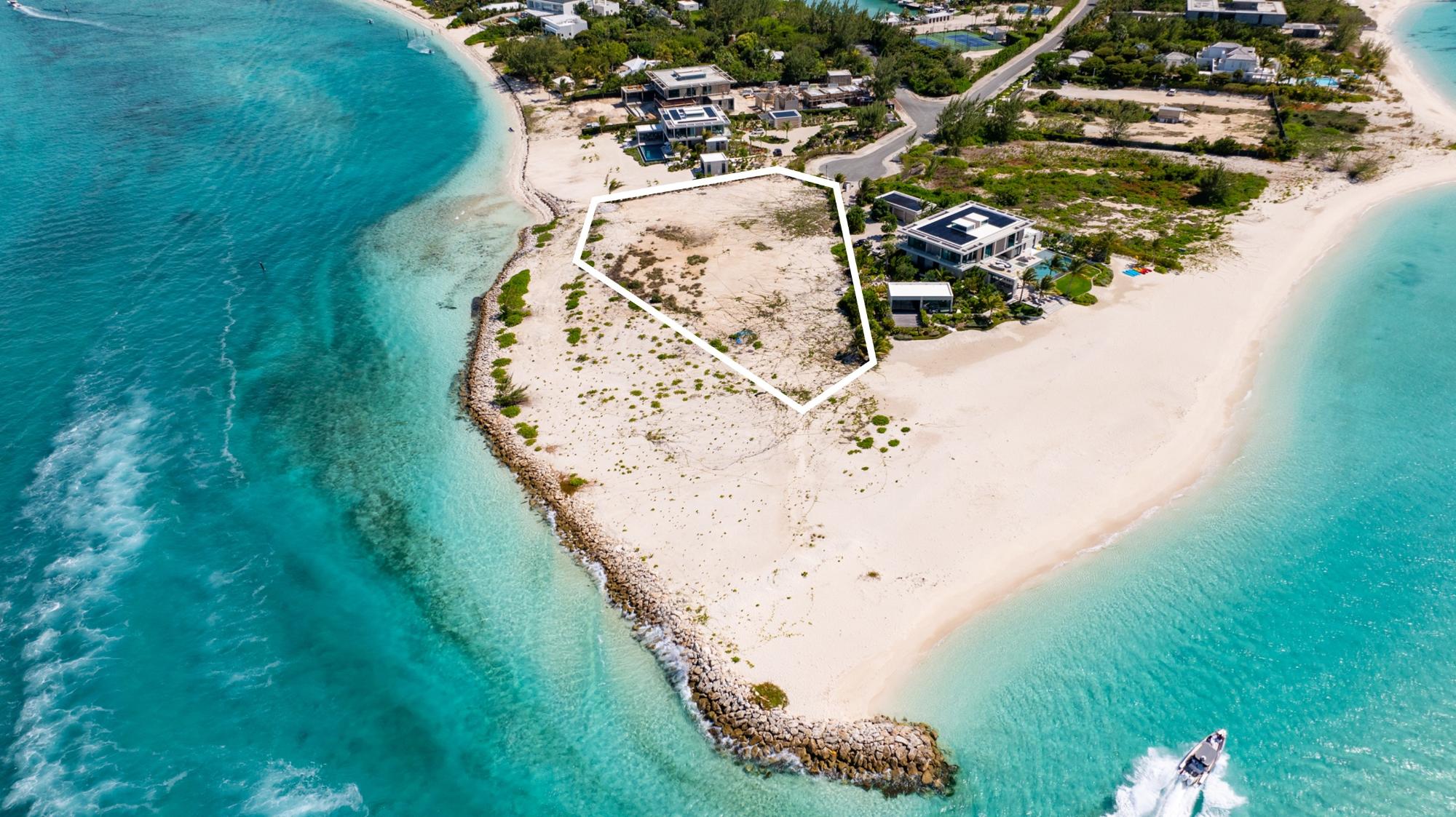 1-Acre Triple-Exposure Waterfront Estate Lot with 318 Feet of Pristine Beach Frontage. Gracing the crown of 'Emerald Point,' this distinctively contoured waterfront parcel wraps around the tip of the point, featuring triple exposure and a remarkable 318 feet of beach and water frontage. The 1-acre site is flanked by recently finished Peninsula at Emerald Point residences on both sides within the coveted Leeward enclave. Situated at the absolute eastern extremity of the isle, this remarkable property showcases pristine shoreline and waterway access with soft white sand and commanding water views to the north as well as across the channel to Little Water Cay and the mangrove islands. This exclusive acquisition includes privileges to tennis and pickleball facilities, plus a 35-foot berth with private hoist and protected storage at the Emerald Point marina, strategically positioned nearby. Emerald Point homeowners enjoy close proximity to the Grace Bay area featuring world-renowned hospitality venues, shopping exceptional culinary establishments, upscale boutiques, and an award-winning Royal Provo Golf Club, all within under 10 minutes of travel. For information regarding a bespoke residence home design tailored for this location, please inquire. These pre-building permit designs specifically tailored for this beachfront home site, created by Blee Halligan (see the copyrighted renderings included with this listing). These preliminary designs are available to provide a foundation for development, though any additional design modifications, MEP (mechanical, electrical, plumbing) engineering, HOA approvals, governmental permits, or further planning services would be the responsibility of the buyer. A new owner simply needs to bring their creative vision to life while enjoying this unique site at the northeastern tip of Emerald Point.