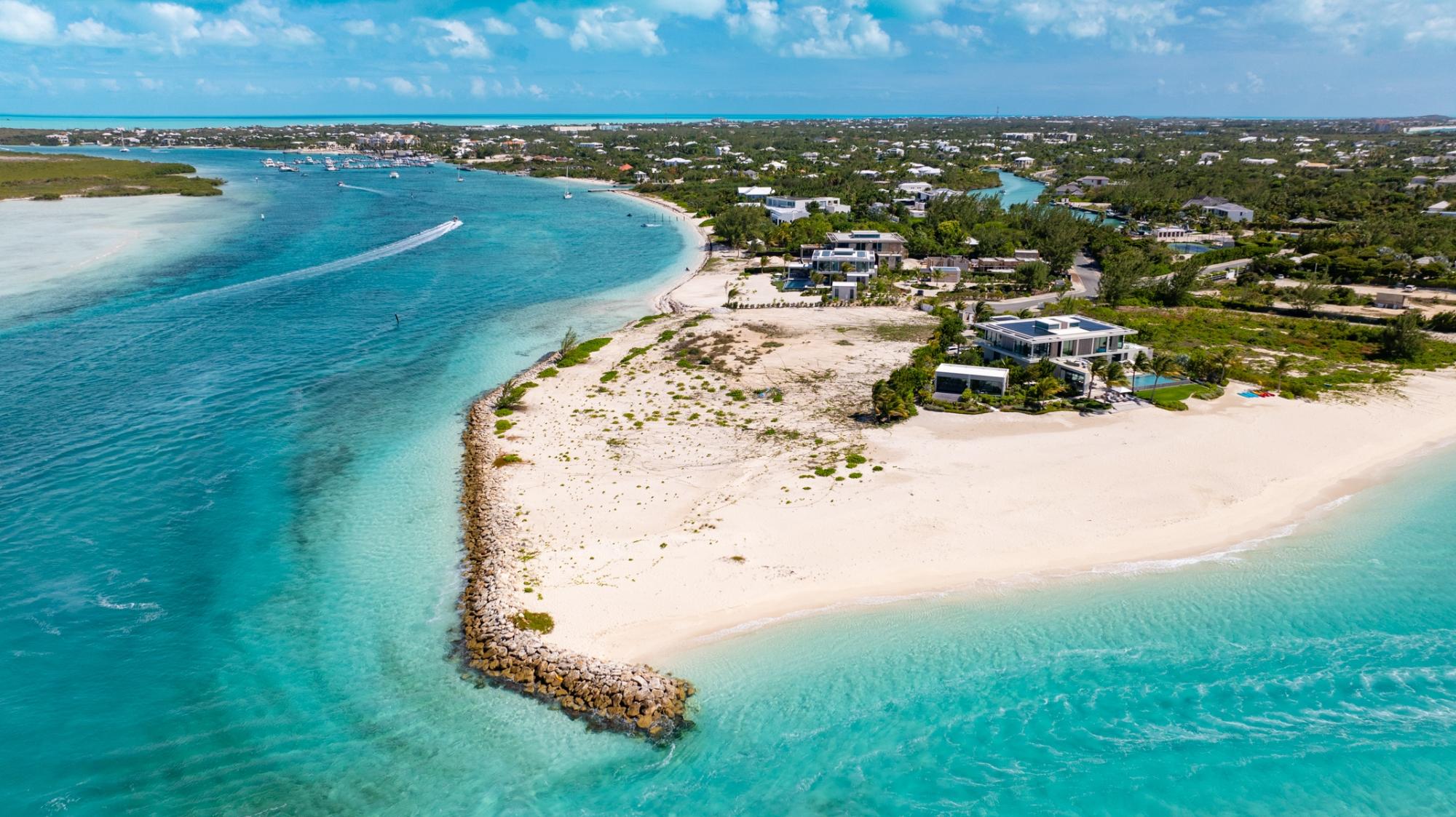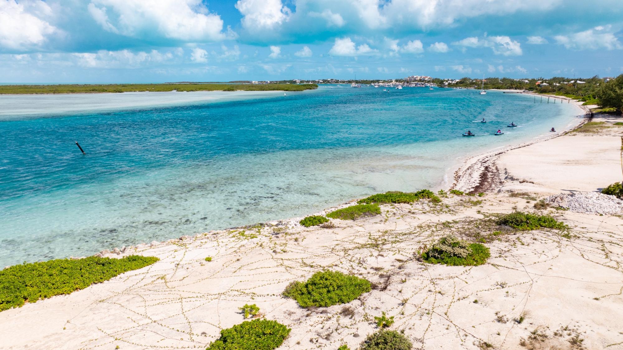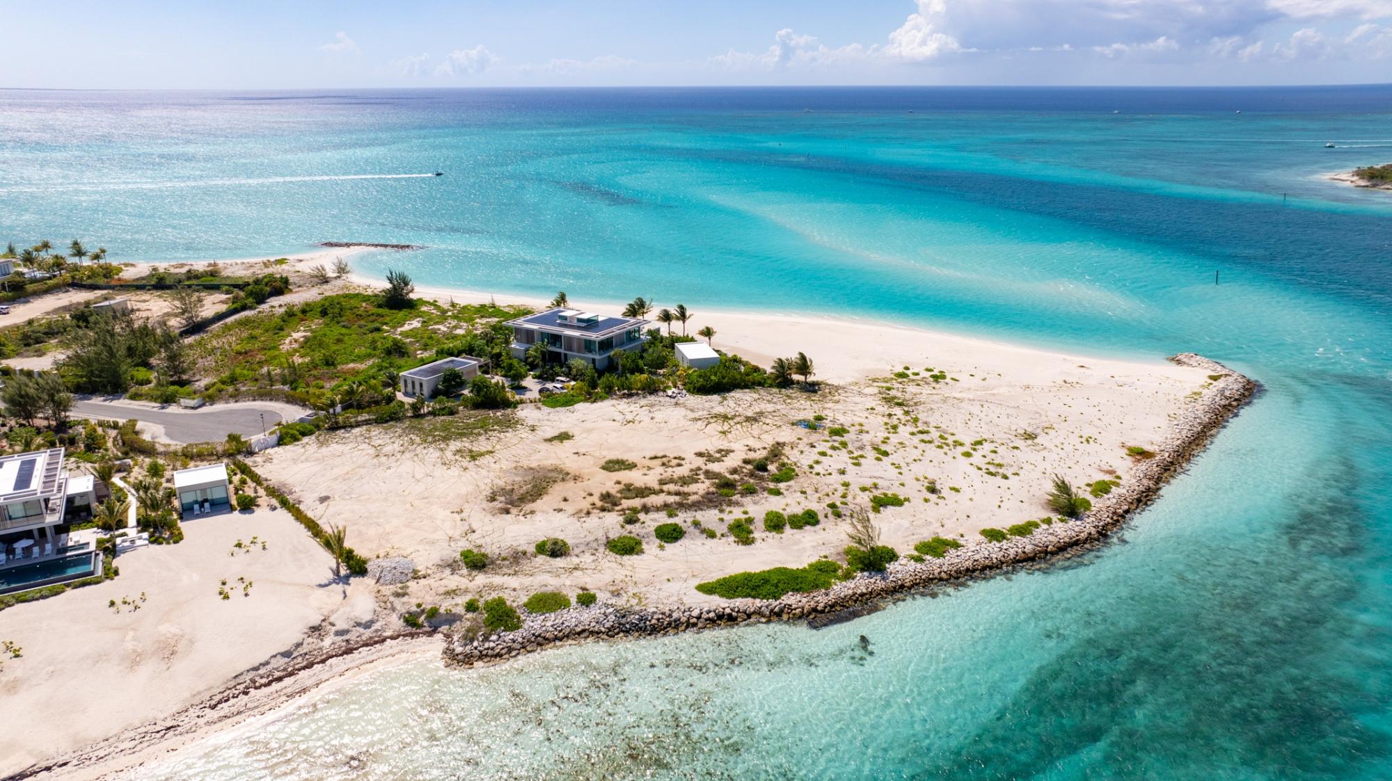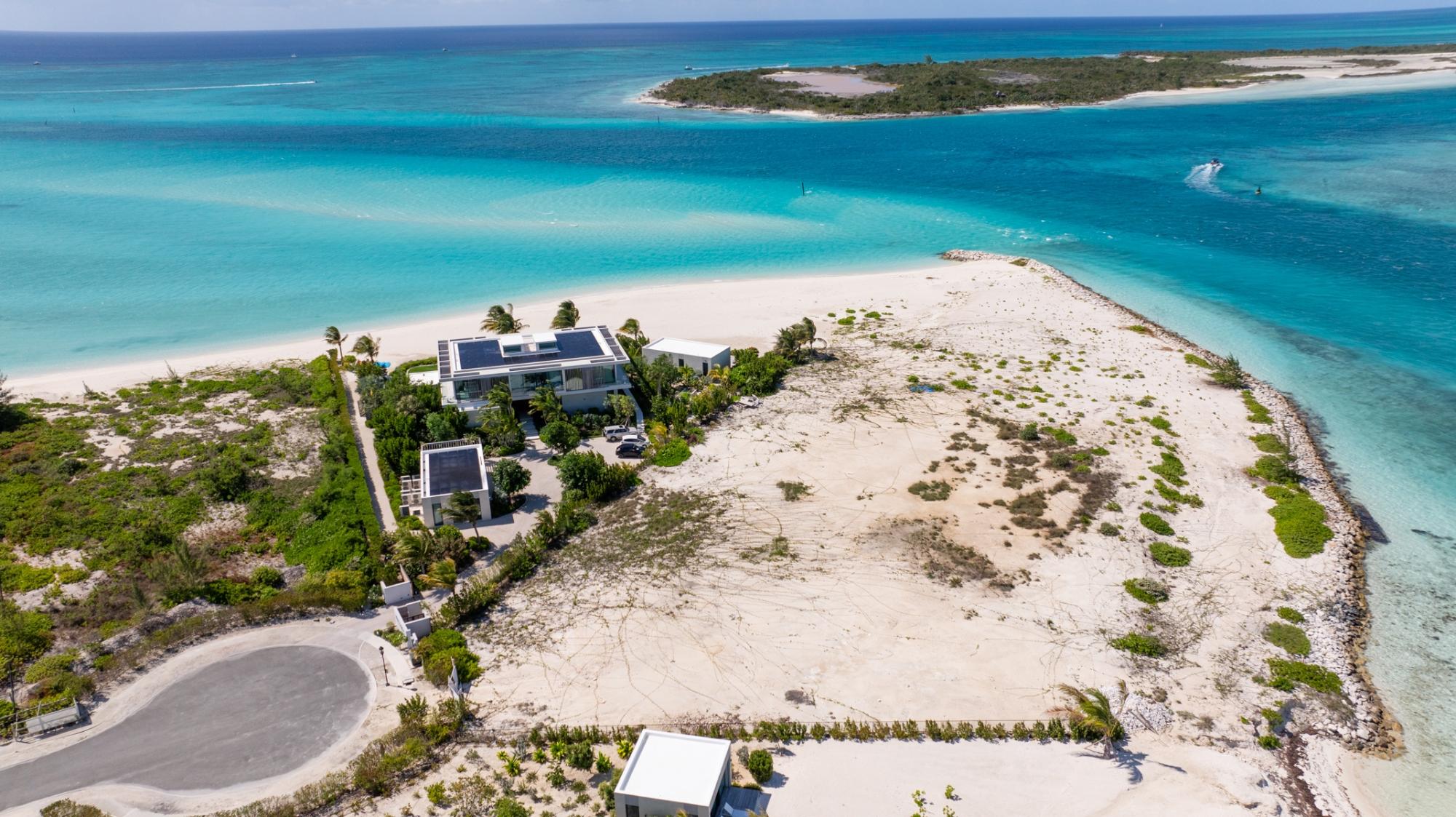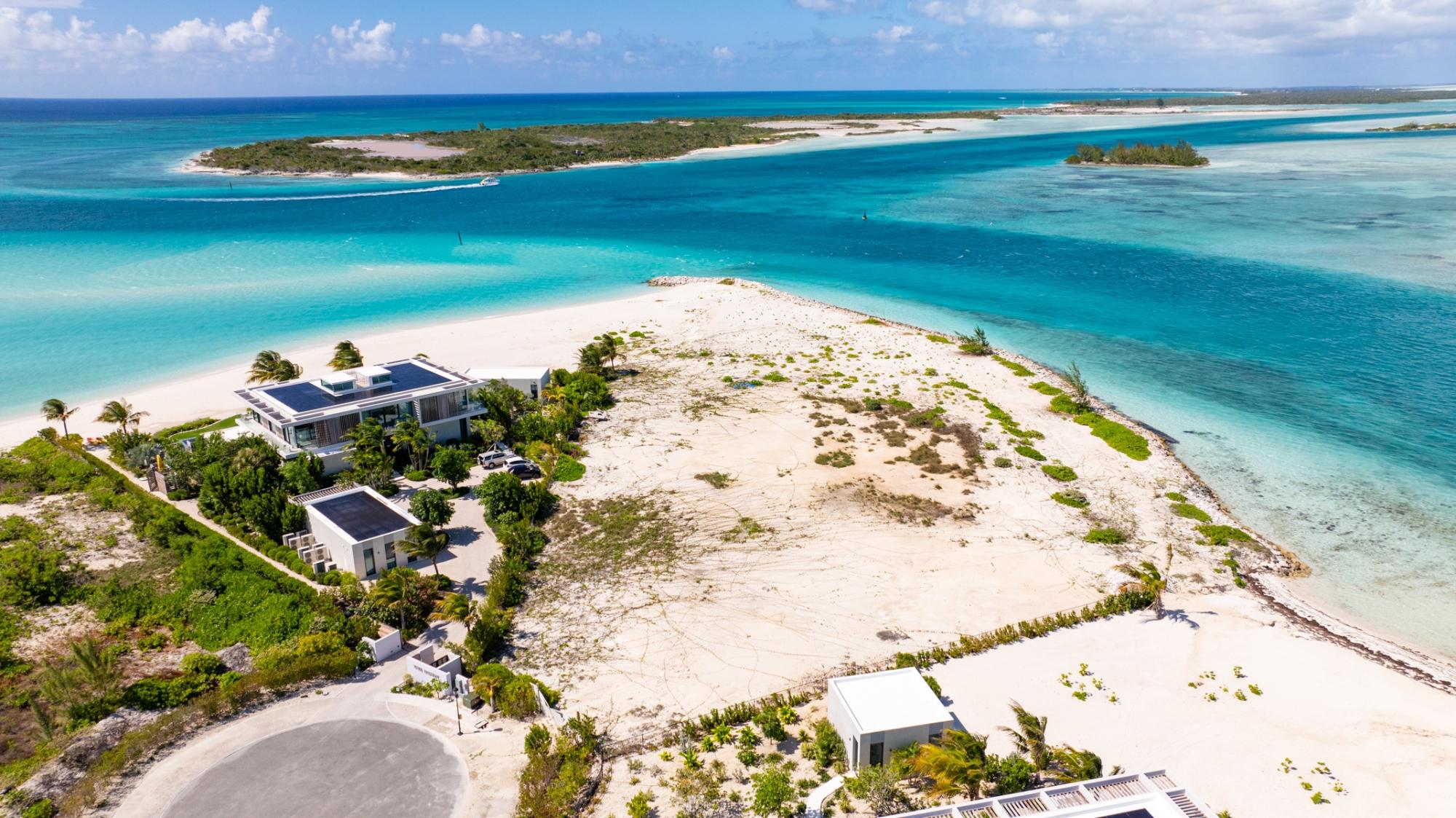 1-Acre Triple-Exposure Waterfront Estate Lot with 318 Feet of Pristine Beach Frontage. Gracing the crown of 'Emerald Point,' this distinctively contoured waterfront parcel wraps around the tip of the point, featuring triple exposure and a remarkable 318 feet of beach and water frontage. The 1-acre site is flanked by recently finished Peninsula at Emerald Point residences on both sides within the coveted Leeward enclave. Situated at the absolute eastern extremity of the isle, this remarkable property showcases pristine shoreline and waterway access with soft white sand and commanding water views to the north as well as across the channel to Little Water Cay and the mangrove islands. This exclusive acquisition includes privileges to tennis and pickleball facilities, plus a 35-foot berth with private hoist and protected storage at the Emerald Point marina, strategically positioned nearby. Emerald Point homeowners enjoy close proximity to the Grace Bay area featuring world-renowned hospitality venues, shopping exceptional culinary establishments, upscale boutiques, and an award-winning Royal Provo Golf Club, all within under 10 minutes of travel. For information regarding a bespoke residence home design tailored for this location, please inquire. These pre-building permit designs specifically tailored for this beachfront home site, created by Blee Halligan (see the copyrighted renderings included with this listing). These preliminary designs are available to provide a foundation for development, though any additional design modifications, MEP (mechanical, electrical, plumbing) engineering, HOA approvals, governmental permits, or further planning services would be the responsibility of the buyer. A new owner simply needs to bring their creative vision to life while enjoying this unique site at the northeastern tip of Emerald Point.