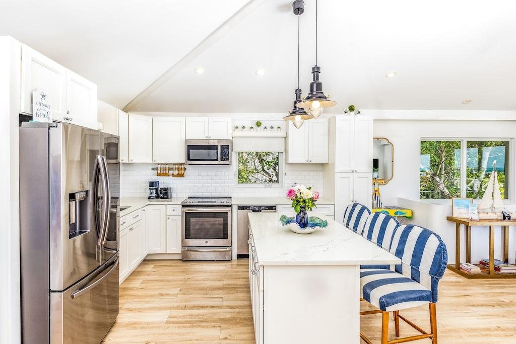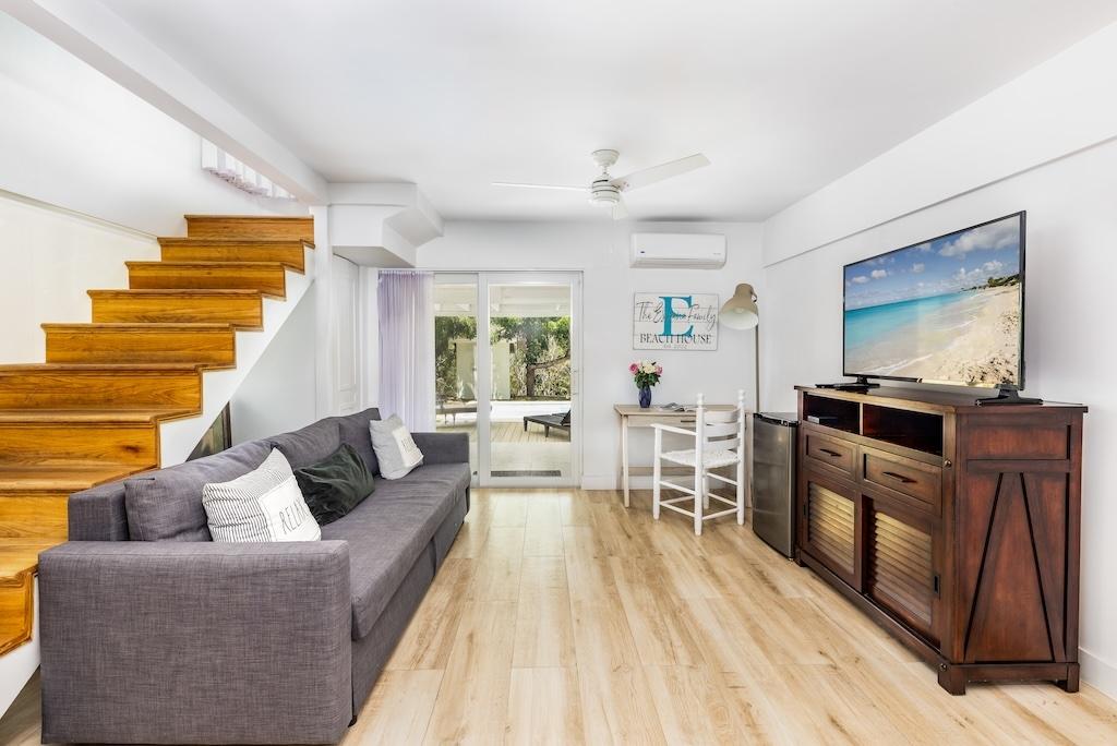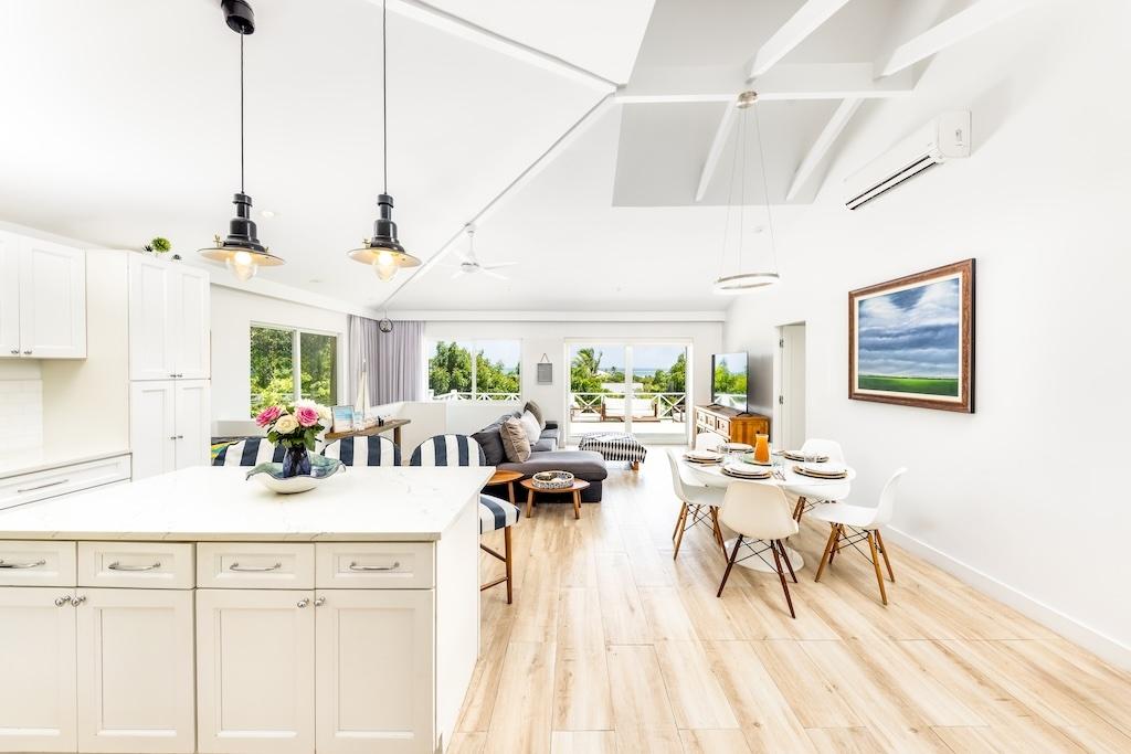 Located in the quiet and private gated community of Richmond Hill villas, Treetop is true to its name as it is perched above lush landscaped grounds overlooking Provo’s north shore. While it was originally built in 1990, This four bed three bath 2841 sf family residence saw a complete renovation in 2017 to today’s modern decor and finishings. In 2019 a plunge pool was added making treetop stand out. another unique feature is it being the only full family 4 bedroom dwelling in the community among duplexes. That said it can easily be converted into a duplex to create split units for mixed use, long or short term rental offerings. Treetop Villa is ideal for family gatherings and entertaining. From the expansive deck the breathtaking views of the north shore extends as far east as World famous Grace bay beach. RICHMOND HILL COMMUNITY HAS OFFERED A SECURE FAMILY FRIENDLY ENVIRONMENT FROM THE LATE 90’S AND IS STILL A COVED ADDRESS TO THIS DAY. SELDOM DO OWNERS PART WITH THEIR PROPERTIES SO CONSIDER YOURSELF FORTUNATE TO HAVE A CHANCE AT BECOMING A PART THIS NEIGHBOURHOOD. THE COMMUNITY OFFERS COMMUNAL POOL, TENNIS/PICKLE BALL COURT, BATHROOM AND SHOWER FACILITY. BOASTING WELL MENTIONED ROADS AND LANDSCAPING WITH SOLAR LIGHTING ALONG THE ROADWAYS. AT RICHMOND HILL YOU ARE TUCKED AWAY FROM IT ALL YET IN THE HEART OF IT ALL. WE WOULD LOVE TO HELP YOU JOIN THIS LOVELY COMMUNITY.