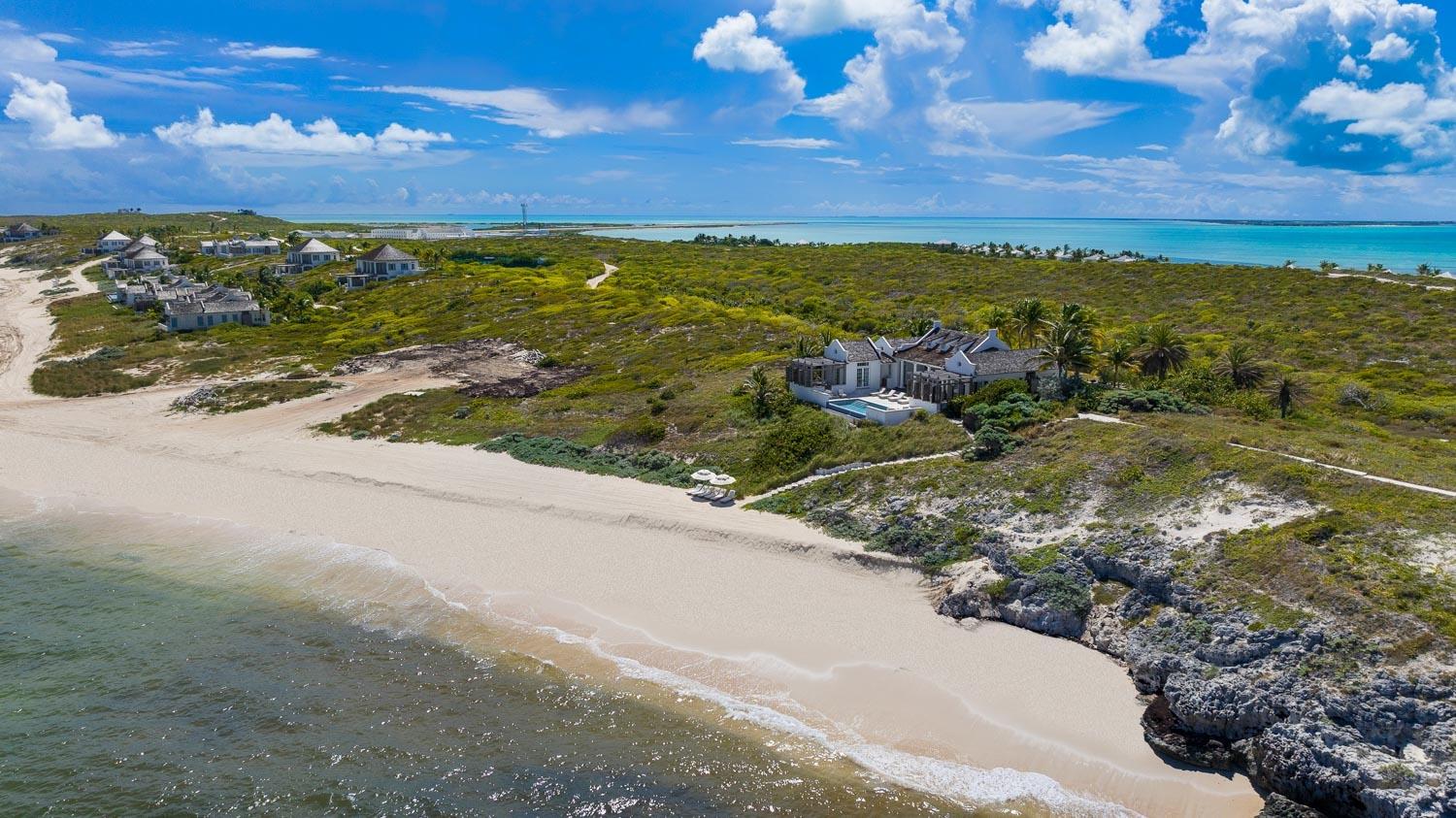 Waypoint occupies one of the most privileged positions in the Turks & Caicos Islands—set on 2.4 acres at the northernmost tip of Ambergris Cay, where turquoise waters meet total seclusion. Elevated thirty-five feet above sea level and framed by lush tropical vegetation, this 3,790 sq. ft. four-bedroom estate commands sweeping views of Columbus Beach and the Caribbean horizon from sunrise to sunset. Designed for refined island living, Waypoint’s architecture celebrates space, light, and privacy. The infinity pool and southeast terrace capture the morning sun over the Caicos Banks, while the west terrace transitions effortlessly to shaded outdoor dining with glowing sunset views. Every room opens to ocean vistas and natural breezes, creating a seamless flow between indoors and out. This exceptional property includes an adjacent lot that ensures lasting privacy or the opportunity for future expansion—an advantage unique to this northern point of Columbus Beach, where no further development will occur beyond the estate. Waypoint’s interiors pair elegant furnishings and top-tier appliances with thoughtful amenities such as a stargazing telescope, HDTV entertainment, and a jacuzzi master bath overlooking the sea. As part of the exclusive Turks & Caicos Collection, Waypoint benefits from full resort services including access to the Club House, Fitness Center, Tennis Courts, Calico Jack restaurant, and the newly upgraded Marina—all within a short golf cart ride. Waypoint represents a rare opportunity to own one of the island’s most private and iconic beachfront estates—an extraordinary balance of architectural simplicity, natural beauty, and enduring value within the Ambergris Cay lifestyle.