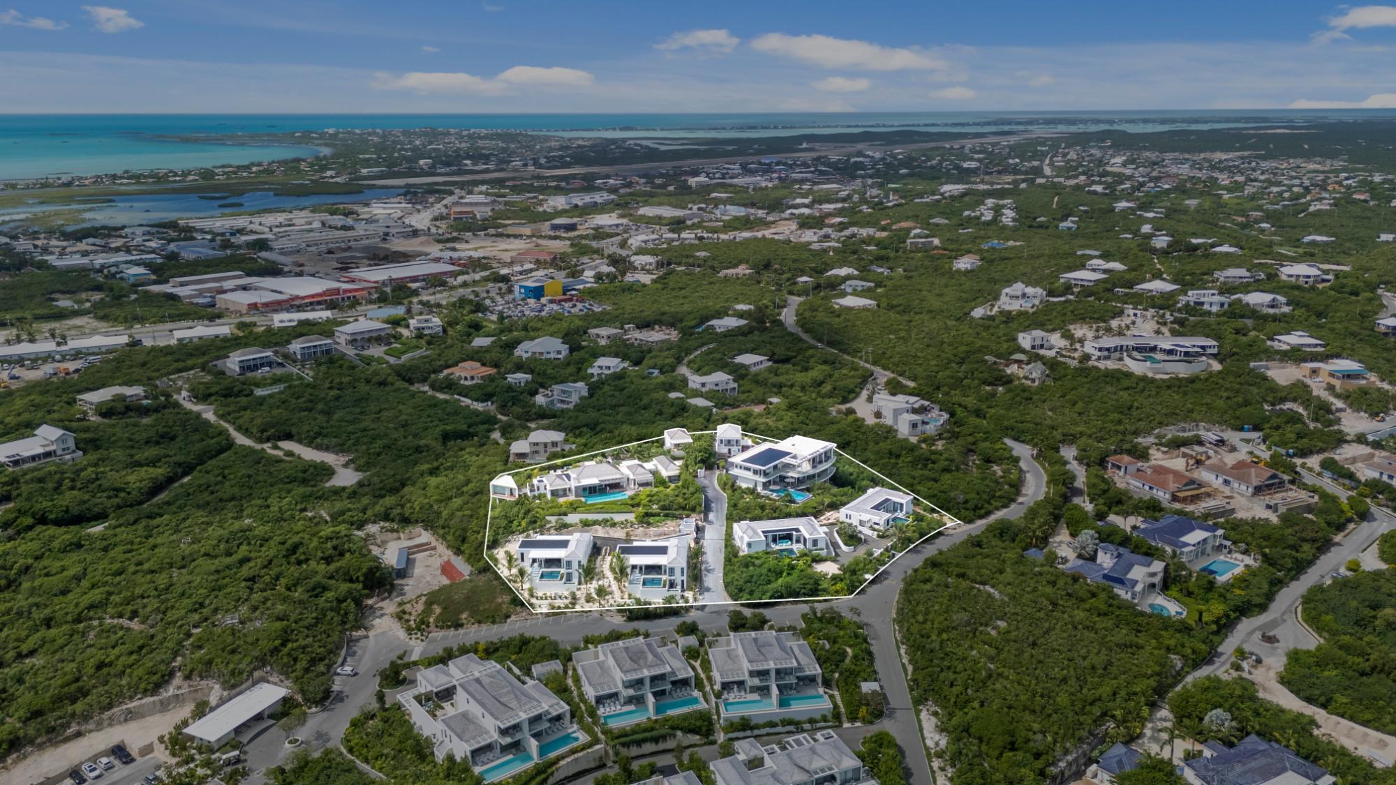 Perched on the hillside of Blue Mountain overlooking the turquoise waters of Turks & Caicos, Skyline Villas is a rare opportunity to acquire six architect-designed luxury homes—available individually or as a turnkey investment portfolio. Each residence combines contemporary Caribbean design, imported Italian fixtures, and Roche Bobois furnishings with seamless indoor-outdoor living. The villas range from three to five bedrooms, all featuring ensuite baths, private terraces, and expansive pools framed by ocean or garden views. Several include gyms, guest suites with kitchenettes, and thoughtful accessibility features. Sustainability meets sophistication with over $420,000 in solar installations, dramatically reducing operating costs and enhancing long-term value. Located just minutes from the beach and Grace Bay amenities, Skyline Villas offers effortless access to dining, nightlife, and island adventures while maintaining an atmosphere of privacy and serenity. Whether held as a full compound, managed hospitality venture, or sold individually, Skyline Villas delivers flexible ownership, proven rental performance, and lasting investment appeal in one of the Caribbean’s most desirable destinations.